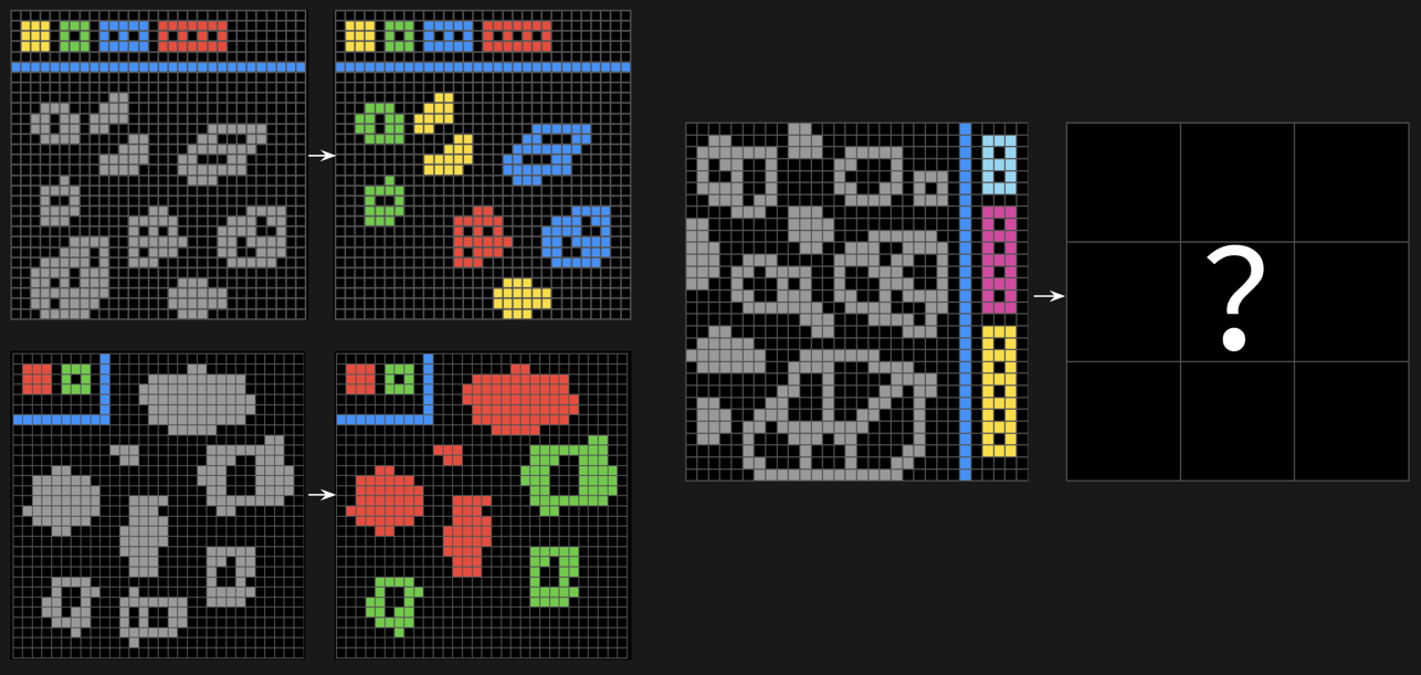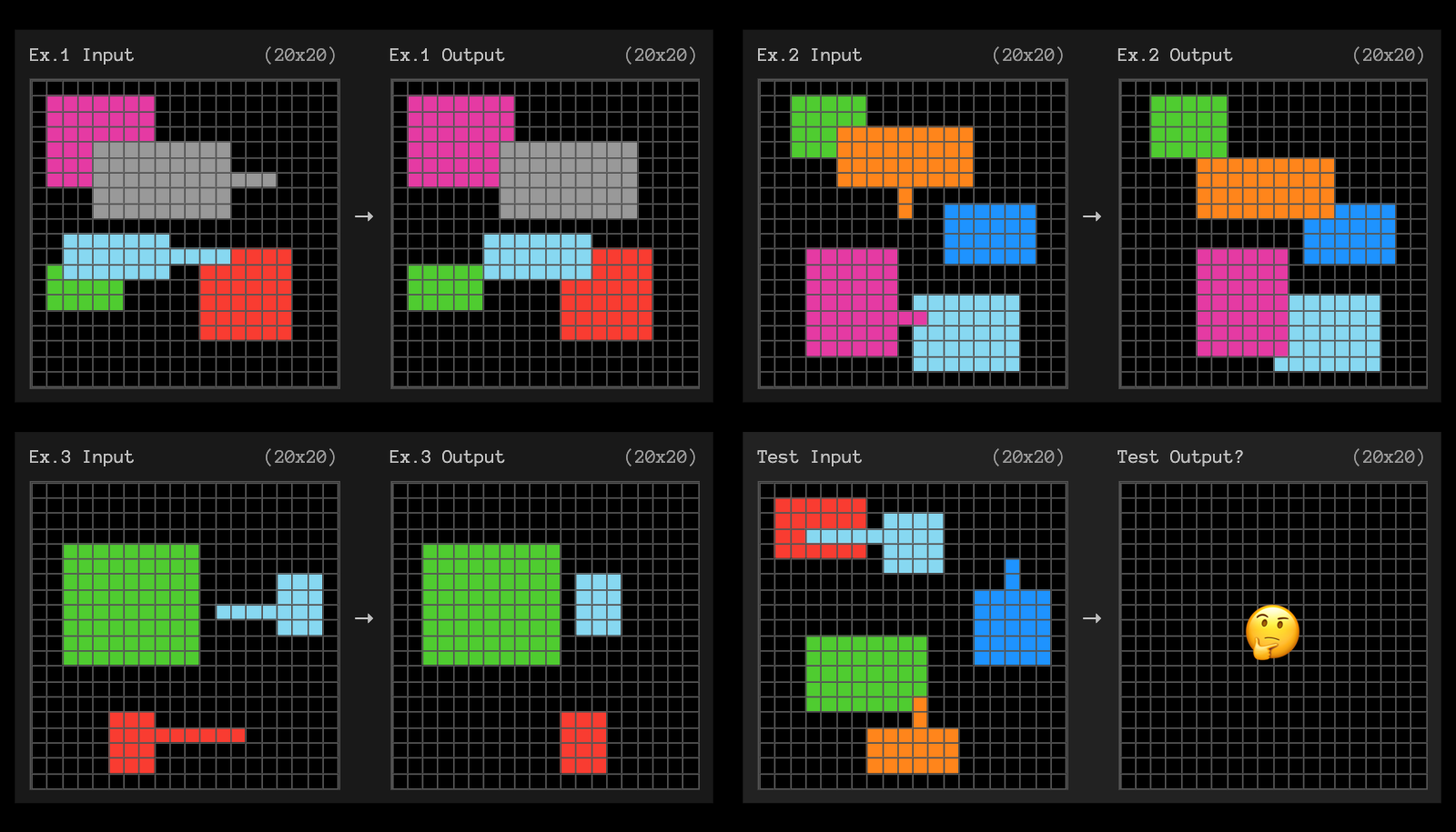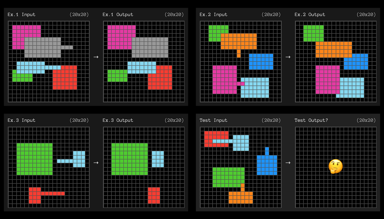 ARC-AGI turns that idea into code: small grid puzzles that require spotting a pattern from a few examples and applying it to a new case.